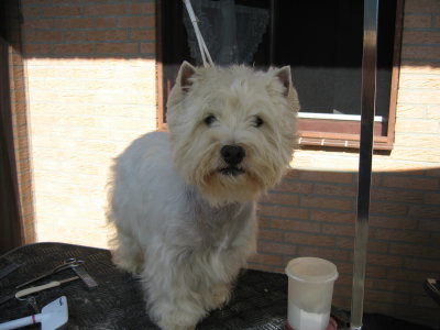 Auf den Nachherfotos schaut er richtig süß aus und hat eine richtige Westiefrisur. Die Besitzer müssen doch richtig glücklich sein mit ihrem getrimmten Westie.