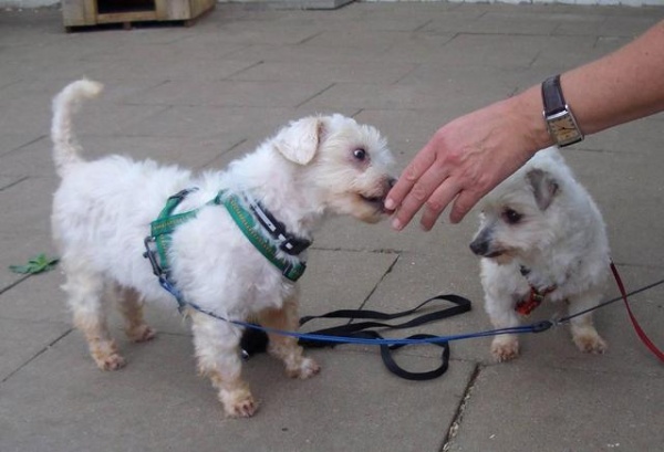Wir haben die Beiden dann mit bekommen und sind trotz Platzregen etwas mit ihnen gelaufen. Haben sie zum Auto mitgenommen, wo meine 3 Mäuse aufgeregt warteten. Etwas irretiert, dass Fraule mit zwei anderen weissen Fellkinder daher kam, stiegen sie ganz aufgeregt aus und begrüssten die Beiden. Alle waren lieb, kein gezicke und gekeife. Allerdings waren sie nicht damit einverstanden, dass sie dann wieder zurück ins Auto mussten und nicht mitlaufen konnten. Die Beiden anderen widerum waren ganz traurig , dass sie wieder mit zurück ins Heim gehen sollten. Wollten nicht hinlaufen sondern blieben ständig stehen und man musste sie ziehen. Das war echt so traurig. Im Tierheim wollte man uns überreden, die Beiden mit zunehmen wenigstens als Plfegestelle. Aber ich kann beim besten Willen keine Hunde mehr aufnhemen nicht mal zur Pflege. Traurig haben wir sie zurück gelassen. Aber vielleicht findet sich ja hier übers Forum jemand, der die Beiden nehmen kann. Wenn nicht für immer, aber vielleicht in Pflege? Ich würde es den kleinen so gönnen. Sie haben solche lieben Charakteren.