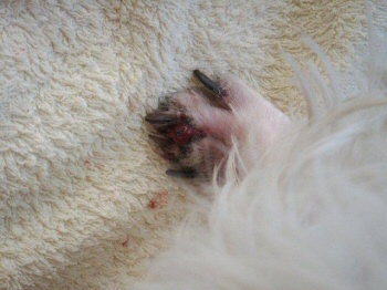 Da sich ja anscheinend einige Tierärzte immer noch nicht auskennen und noch nicht mal wissen wie Demodex beim Westie ausschaut stelle ich mal zwei Fotos ein.