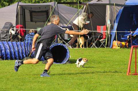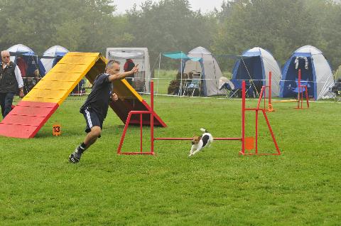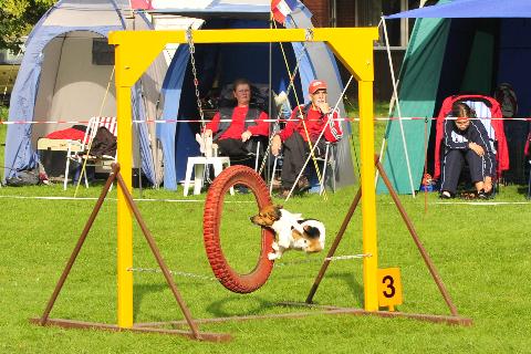 wisst ihr ,meine erfahrung sagt: wenn der spass stimmt,stellt sich der erfolg von allein ein. man sollte die hunde nie nur tumb abarbeiten lassen sondern sie anfangs nur im parcour begleiten und sie alles selbst entdecken lassen. angst braucht man nicht zu haben kennen unsere zwerge auch nicht. wichtig ist nur wenn der zwerg etwas instinktiv angeht und richtig macht sofort überschwenglich freuen und möglichst versuchen das gleiche noch mal mit motivation vom hundeführer zu versuchen. so kommt man stück für stück weiter ! es wird schwierig sein, trainer zu finden die das so zulassen aber ein hund der sich etwas selbst erarbeitet hat, wir später wesentlich sicherer und selbstbewuster auftreten - ein richtiger teampartner eben - geduld ist hier das zauberwort. diese methode stösst bei vielen ausbildern auf skepsis da sie dann lediglich die hundeführer beobachten ggf anleiten müssen ohne nach schema f das eine oder andere zu erreichen. nach dieser methode haben wir in unserer gruppe alle auch die größten slalomidioten und kontaktzonenspringer zu sicheren verlässlichen teamplayern gemacht. ich hatte ja schon mal geschrieben das meinegruppe wettkampforientiert ist. wenn beide im team ihren"job" beherrschen, strahlt das selbstbewustsein aus und lässt den kopf frei für die vom richter gestellte aufgabe ohne denken zu müssen - oh je ne wippe oder warum steht der slalom so dicht da dran.....-denn gewinnen spielt sich zuerst im kopf ab ! - und machen wir uns nichts vor wer auf wettkämpfe geht möchte auch erfogreich sein und ich finde man sieht sehr deutlich wer als team spass hat. übrigens erfolg setze ich nicht gleich mit plazierung auch eine disqualifikation kann ein tolles teamerlebnis sein