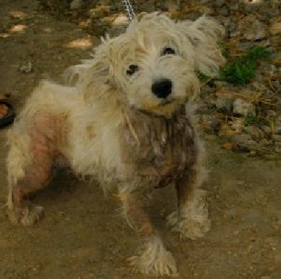 Ein Westiemädchen Mirka soll zum 26 6. 13 getötet werden sitzt in Dombovar in der Tötung, hat wohl Demotex milben zu finden bei Tierheimleben in Not 3-4 j
