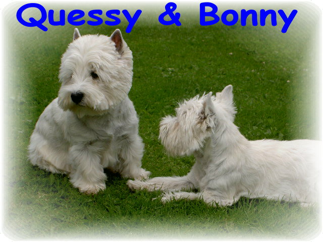 Schön das ihr wieder gesund und munter zu Hause seit und so eine tolle Woche verbracht habt. Ihr und eure Pelnäs´chen habt uns eine große Freude gemacht mit eurem Besuch , es war wunderschön ! 10 süße Westiemäuse tummelten sich im Garten und wäre unser Nachbarshundi Dagobert zu Hause gewesen , er hätte sich seine Pfote vor die Stirn gehalten und umgekippt da "Mandy sich so plötzlich vermehrt hat."