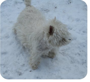 Bonny hat sich heute ersteinmal noch ordentlich im Schnee gewälzt