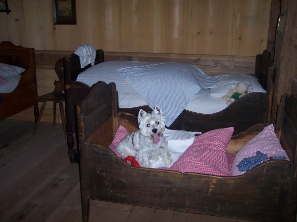 Wuw, wuw Ihr Lieben, hier spricht Jessy, und was das Schönste war: Ich konnte mit Frauchen das Bett ganz allein teilen, weil Herrchen in die Stube aufs Sofa abgezogen ist. Das Bett war nämlich für drei viel zu klein. Und ich brauch doch soooooo viel Platz. Ach, kuschel war das schön.