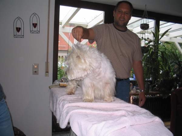 wir ( Gitte, Gudrun und ich) haben heute ein kleines Schwabentreffen bei Gudrun veranstaltet. Damit uns nicht zu langweilig wrd, haben wir uns vorgenommen, Felix zu trimmen.