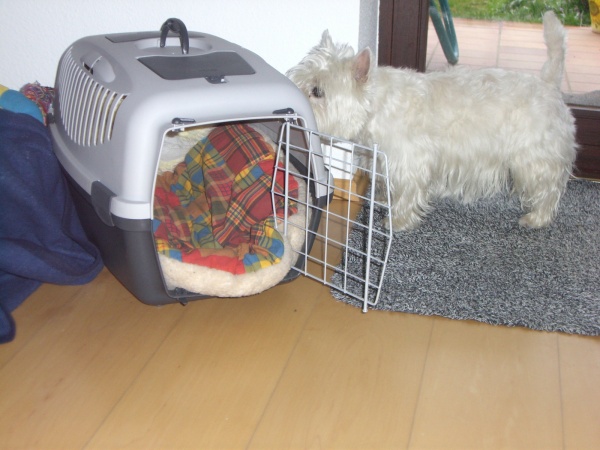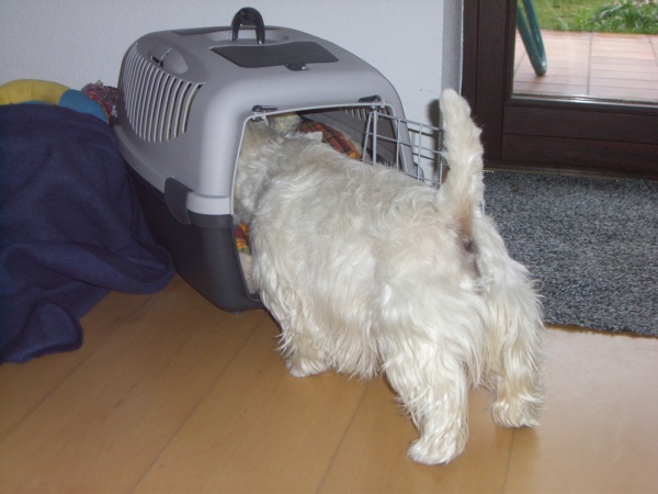 Ja meine Reisen auch nur in der Box ,sie kennen es von klein auf und wissen schon ganz genau das es los geht wenn die Boxen auf dem Flur stehen.