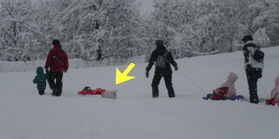 | also schlitteln mit den Kindern das wäre ja was. (Robbi hat sich in die Marschkontrolle eingereiht und alle haben sich gefreut) |