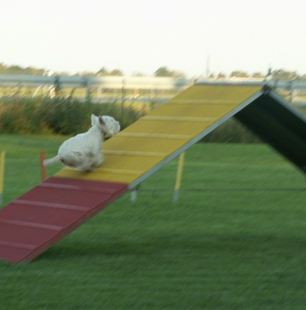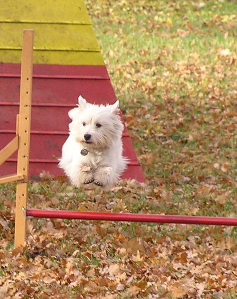 Hier ein paar Fotos, Westies sind einfach tolle Agilityhunde....ich denke, man kann sehen, mit welcher Eleganz, Unerschrockenheit und Spaß sie jedes noch so große Hindernis meistern....