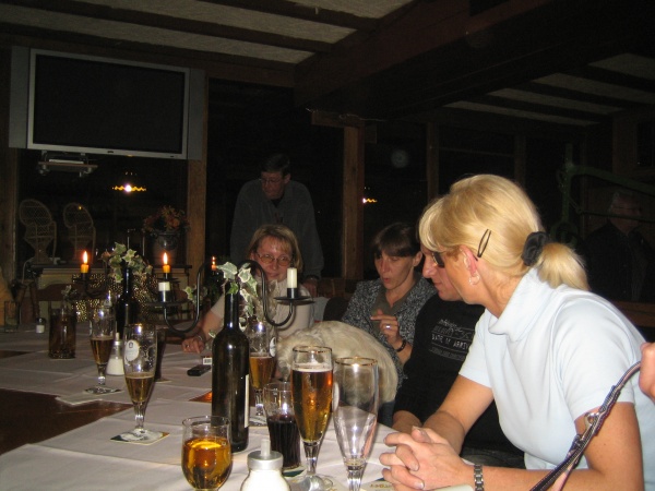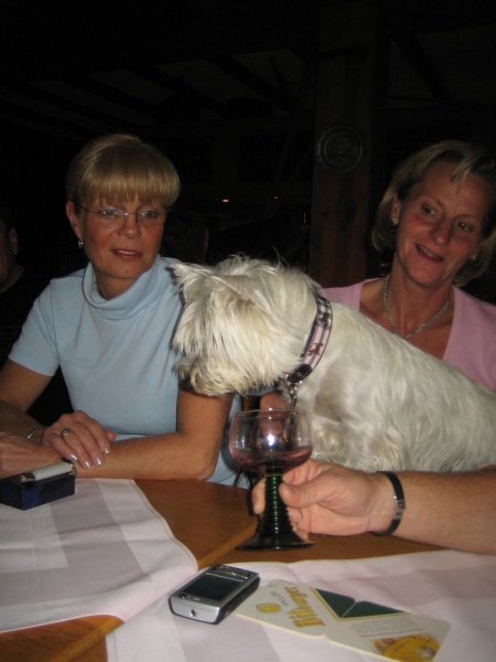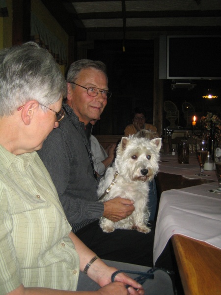 Der Abend wurde noch feucht-fröhlicher als vorher und ich bin mit einem Schwipps ins Bett gegangen . Unsere "gelbe" Gruppe (Sonja, Karl-Heinz, Angela, Heinz und ich) mussten schliesslich auf unseren Sieg einen trinken .