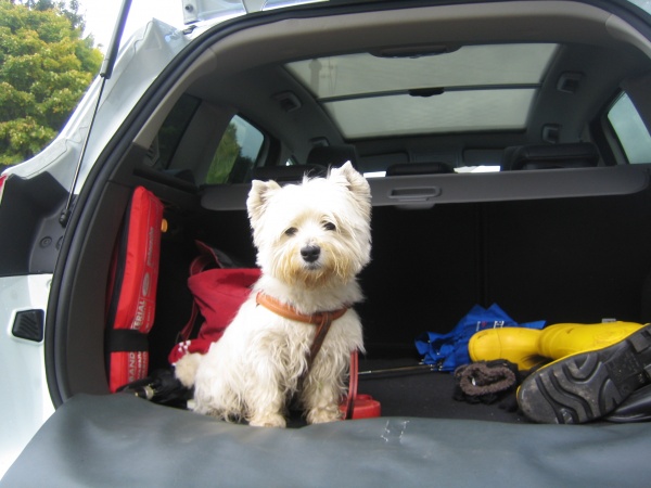 Balu ist satt (man achte auf den "Möhrenbart") und macht Pause im Kofferraum