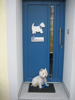 Also, das Westie-Türschild habe ich hier bekommen: